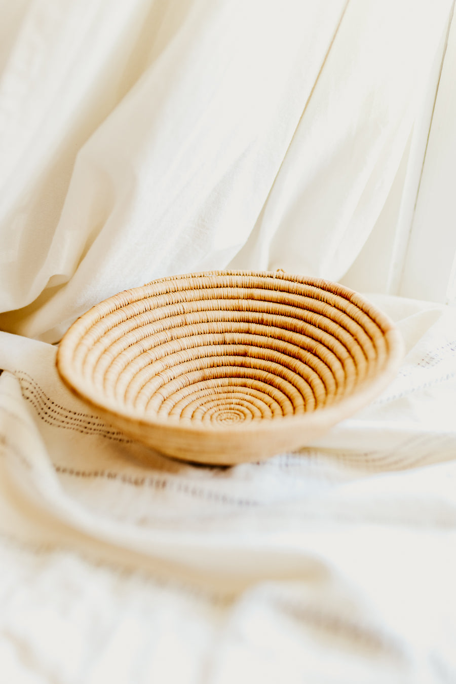 Our woven baskets are beautifully and intricately woven from dyed grass by our artisans on Nkombo Island, a remote island on Lake Kivu in Rwanda.