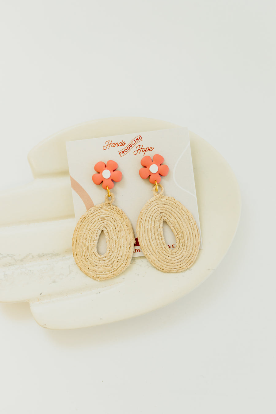 Introducing our Blossom Earrings—a fusion of Rwandan artistry and Baton Rouge craftsmanship. Handwoven hoops by artisans in Rwanda, meets a clay flower crafted by refugees in Baton Rouge. This unique blend of cultures creates a striking accessory, exuding elegance and supporting communities with every wear.