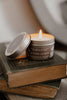 Fragrance Notes: Spiced Apple, Cedar Leaf, Pine & Earthy Musk -Cotton wick, soy blend wax -phthalate-free fragrance oils -4 oz travel tin -Hand poured in small batches by women survivors