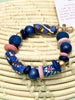 Our recycled glass bracelet is made by local refugee women and features hand painted recycled glass beads from the people of Krobo Mountain, Ghana. The glass is recycled from bottles and other glass items that are turned into powder, then poured into molds. Each bead is hand painted then baked again. A true labor of love.