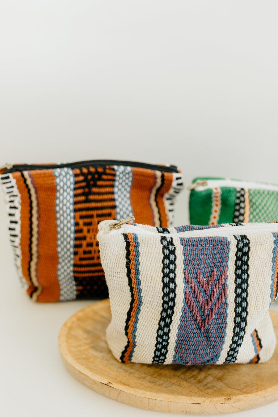 These bags are perfect for carrying all the essentials. Fill them with makeup or hygiene products and throw them in your luggage on your next trip! Each one is unique and made by hand on a backstrap loom by our artisans in Costa Rica. By purchasing one of our Cosmetic Bags, you are giving our artisans hope and the resources they need to provide for their families.